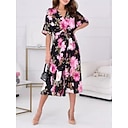 Dames Normaal Jumpsuit Actief Bloemig Halve mouw V-hals Hoge taille Vakantie Dagelijks Normale pasvorm Zwart Zomer |