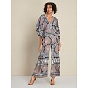 jumpsuit met magyaarse mouwen en diepe v-hals van satijn met volksprint |