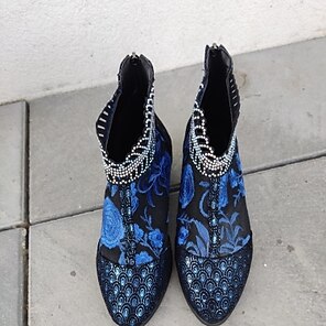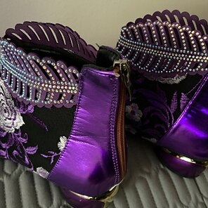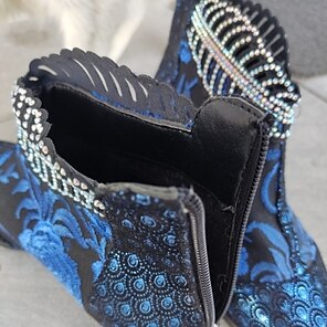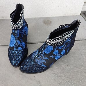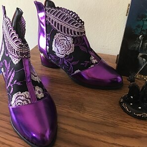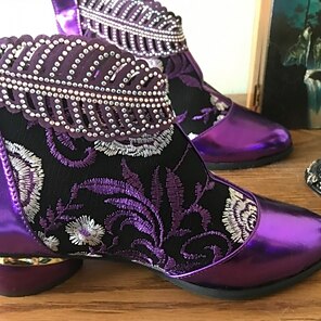 Very vibrant and pretty ankle boots. They are a bit snug but the zipper in the back helps with getting them on and off.