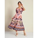 Dames Jurk met print Maxi-jurk Rood Beige Halve mouw Bloem Zak Zomer V-hals Jurken Strand S M L |