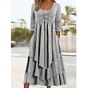 Dames Halflange jurk Casual jurk Modieus Modern Dagelijks Vakantie Weekend Normale pasvorm Effen Lange mouw Strakke ronde hals Bruin Groen Lichtgrijs Lente Herfst |