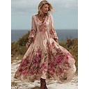 Dames Halflange jurk A lijn jurk Feest Casual Boho Strand Afspraakje Ruim Passend Bloemig Grafisch Lange mouw V-hals Blozend Roze Zomer Lente |