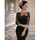 Strak kolom Tot de knie Kort Mini Feestjurk Cocktail jurk Bruiloft gast jurk Moeder van de bruid jurk Lange mouw Illusie Hals Elegant Bruiloft gast Kentucky Derby Semi formeel Kant Stretchstof met |