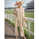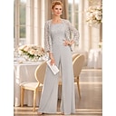 Tweedelig Broek Tot de enkel Moeder van de bruid jurk 3/4 mouw Ronde hals Schouderafhangend Elegant Feest Formeel Bruiloft gast Stretchstof met Sjerp / Lint |