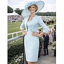 Tweedelig Strak kolom Tot de knie Bruiloft gast jurk Moeder van de bruid jurk Halve mouw Stomp Hals Bruiloft gast Kerk (83 Satijn Kant Korte Jas Jurken met Kant Split voorzijde Kristallen broche |
