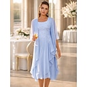 Tweedelig A-lijn Tot de knie Bruiloft gast jurk Moeder van de bruid jurk Mouwloos Ronde hals Elegant Bruiloft gast Bruiloft Chiffon Kant Jas Jurken met Plooien Appliqués |