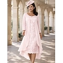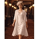 Tweedelig Strak kolom Tot de knie Bruiloft gast jurk Moeder van de bruid jurk 3/4 mouw Met sieraad Elegant Formeel Bruiloft gast Kerk (83 Chiffon Kant Wrap inbegrepen Jas Jurken met Kralen Appliqués |