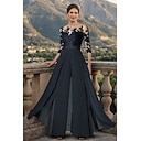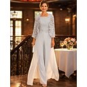 Broek Tot de enkel Moeder van de bruid jurk 3/4 mouw Ronde hals Elegant Feest Formeel Bruiloft gast Chiffon Kant met Appliqués |