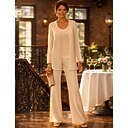 Tweedelig Broek Tot de grond Moeder van de bruid jurk Lange mouw V-hals Elegant Grote maten Bruiloft gast Chiffon met Geplooid |
