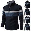 Voor heren Trui Truien met kwartrits Gebreide trui Geribd breien Normaal Gebreid Fleece Kleurenblok Kwart ritssluiting Modieus Basic Alledaagse kleding Afspraakje Kleding Herfst winter Marineblauw S |
