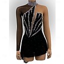 Kunstschaatsjurk dames meisjes schaatsjurk zwart open rug asymmetrische zoom mesh hoge elasticiteit training wedstrijd schaatskleding klassieke kristal / strass lange mouwen schaatsfiguur |
