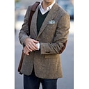 heren tweed visgraat blazer jas vintage plus size normale pasvorm enkelrijs twee knopen groen kaki |