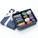 Chakra Genezing Stenen Set Natuurlijke Spar Hexagonale Kolom Dubbelpunt 7 Ongelijke 7 Set Cadeau Doos Kerstcadeau |