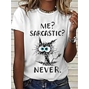 Dames T-shirt Afdrukken Kat Brief Tekst Basic Grappig Korte mouw Ronde hals Normale tops Dagelijks Weekend blauw Wit Blozend Roze |