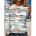 Dames T-shirt Afdrukken Grafisch Geometrisch Gestreept Vintage Modieus Stijlvol Lange mouw Strakke ronde hals Normale tops Dagelijks Licht beige Wit Blozend Roze Fuchsia Bruin Zomer Lente Herfst |