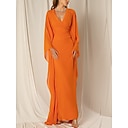 Strand Bruiloft Koker Avondjurk Elegante Jurk Formeel Herfst Enkellengte Lange Mouw V-hals Chiffon met Rimpel Ruffles |