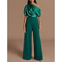 Jumpsuits Bruiloft Gast Elegante Formele Bruiloft Ontvangst Vloer Lengte Korte Mouw One Shoulder Stretch Crêpe met Geplooid |