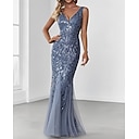 Zeemeermin Trompet Moeder van de Bruid Jurk Bruiloft Gast Elegant V Hals Vloerlengte Kant Mouwloos met Kant |