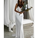 Strandbruiloft Strand Casual Eenvoudige Trouwjurken Sheath Vierkante Hals Camisole Spaghetti Band Sweep Brush Train Rekbare Stof Bruidsjurken Met Rimpelingen Effen Kleur |