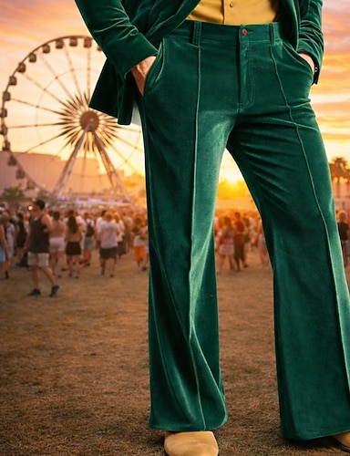 Voor heren Pakken Uitlopende broek Bell Bottom Broek Fluwelen broek Zak Effen Comfort Zacht Volledige lengte Feest Buiten Dagelijks Modieus Streetwear blauw Groen Micro-elastisch