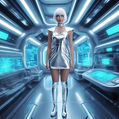 Jurken Cosplay Pruiken Fancy kostuum Astronaut Galaxy Girl Cosplay Kostuum Metaalachtig Volwassenen Dames Halloween Carnaval Feest Prestatie Aankleden