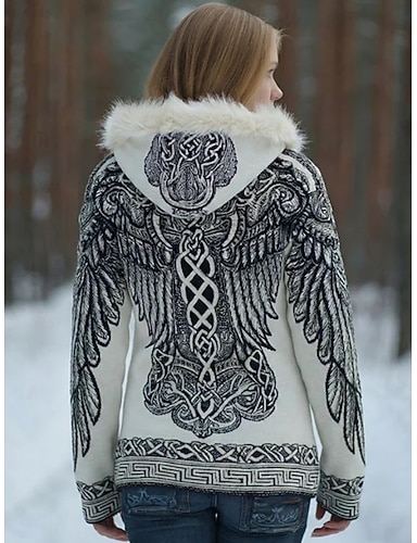 Dames Hoodies met rits Grafisch dier Westers Etnisch Casual Lange mouw Capuchon Normale tops Casual Straat Wit Herfst