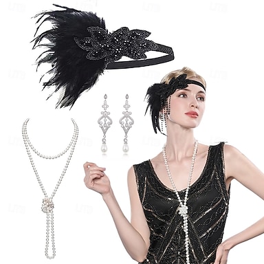 Set Retro vintage Roaring jaren '20 Jaren 1920 Jaren ‘20 flapper hoofdband Hoofddeksels Accessoireset The Great Gatsby Flapper Girl Veer Kostuum Dames Kerstmis Carnaval Kerstmis Retro themafeest