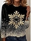 Kerstmis Dames T-shirt Grafisch Sneeuwvlok Vintage Modieus Stijlvol Lange mouw Strakke ronde hals Normale tops Dagelijks Weekend Afdrukken Zwart Herfst Winter