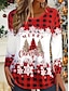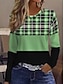 Kerstmis Dames T-shirt Grafisch Ruitjes Sneeuwvlok Vintage Modieus Stijlvol Lange mouw Strakke ronde hals Ronde hals Normale tops Dagelijks Weekend Afdrukken Rood Groen Zomer Lente Herfst Winter