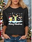 Kerstmis Dames T-shirt Grafisch Kerstmis Vintage Modieus Stijlvol Lange mouw Strakke ronde hals Ronde hals Normale tops Dagelijks Weekend Afdrukken Wit Rood Groen Zomer Lente Herfst Winter