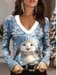 Kerstmis Dames T-shirt Grafisch Vintage Stijlvol Klassiek Lange Mouwen V-Hals Reguliere Tops Dagelijks Print Zwart en Wit Blauw Groen Beige Lente Herfst Winter