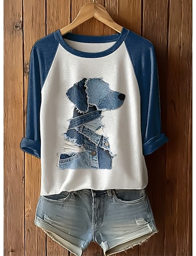 Dames T-shirt Afdrukken Grafisch dier Hond Vintage Stijlvol Klassiek Lange mouw Strakke ronde hals Lange tops Dagelijks blauw Licht Blauw Zomer Lente