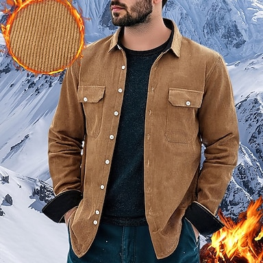 Voor heren Overhemd Fleeceshirt Corduroyshirt Cargoshirt Dagelijks Straat Rood Groen Khaki Donkergrijs Lange mouw Strijkijzer Winter Lente & Herfst Kleding Warm