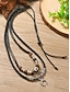 Herenketting in bohemian stijl met dubbele laag, gemaakt van legering. &Leren koord van gemengd materiaal, hanger in de vorm van een halve maan, verstelbaar, perfect voor strandvakantie en dagelijkse