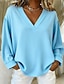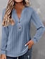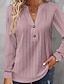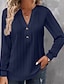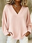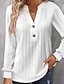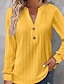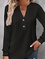 Dames T-shirt Effen Kleur Elegant Modieus Lange mouw V-hals Normale tops Dagelijks Weekend Knop blauw Zwart Wit Geel Blozend Roze Lente Herfst