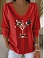 Kerstmis Dames T-shirt Grafisch Sneeuwpop Vintage Stijlvol Klassiek Lange mouw V-hals Normale tops Dagelijks Afdrukken Grijs / Rood Black + White + Red Zwart Wijn Rood Lente Herfst Winter