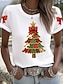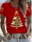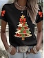 Kerstmis Dames T-shirt Vintage Modieus Stijlvol Korte mouw Strakke ronde hals Normale tops Dagelijks Weekend Afdrukken Zwart Wit Rood Groen Herfst Winter