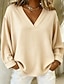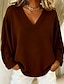 Dames T-shirt Katoenen shirt Effen Kleur Elegant Vintage Modieus Lange mouw V-hals Normale tops Dagelijks Uitgaan Weekend Lapwerk blauw Kastanjebruin Blozend Roze gebroken wit Herfst Winter