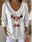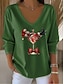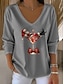 Kerstmis Dames T-shirt Grafisch Kerstman Kerstmis Vintage Stijlvol Klassiek Lange mouw V-hals Normale tops Dagelijks Afdrukken Zwart Wit Rood Groen Grijs Lente Herfst Winter
