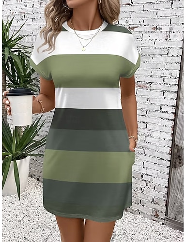 Dames Mini-jurk Hemdjurk T shirt jurk Zomerjurk Casual Dagelijks Feestdagen Afspraakje Normale pasvorm Grafisch Geometrisch Gestreept Korte mouw Strakke ronde hals Blozend Roze Groen Zomer Lente