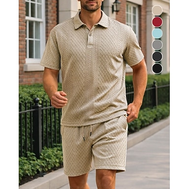 Voor heren T-shirt past Broeken Sets 2 stuks outfits Korte mouw Overhemdkraag Zomer Kleurenblok Modieus Casual 2-stuks Vakantie Alledaagse kleding Uitgaan Zwart Wijn Donkergroen Top T-shirt voor