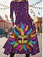Dames Halflange jurk Casual jurk Swingjurk Elegant Modieus Dagelijks Buiten Weekend Normale pasvorm Grafisch Lange mouw Strakke ronde hals Licht Paars Paars Fuchsia Lila Lente Herfst Winter