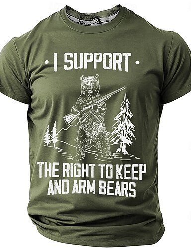 Heren Grappige Graphic T-Shirt Ik Support Het Recht Om Beren Te Houden En Te Bewapenen Pun Korte Mouw Tee