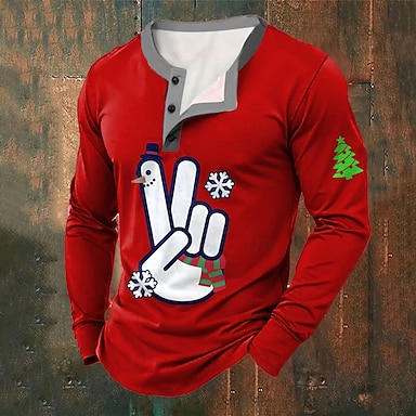 Voor heren Kerstmis handen Henley-shirt Lange mouw Modieus leuke Style Dagelijks Casual Feestdagen Uitgaan Winter Lente & Herfst Zwart Groen Rood blauw Henley Henley-T-shirt