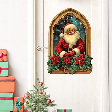 Kerststicker muurstickers, kerstsfeer, kerstman, deur, verwijderbare vinyl muurschildering, slaapkamer, woonkamer, studeerkamer, zelfklevende huisdecoratie, achtergrond voor kerst, festival, feest