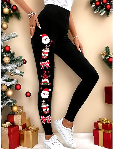 Kerst Vrouwen Kerstman Leggings Vakantie Vintage Mode Volledige Lengte Hoge Taille Broeken Lelijke Graphic Claus Printing Zacht Ademend Hoge Elasticiteit Vakantie Straat Casual Zwart Herfst Winter