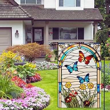 Vlag 12 x 18 Inch Tuinvlaggen Glas-in-lood Kolibries Kleine Tuinvlaggen voor Buiten Buitenvlaggen Feest Tuinvlaggen