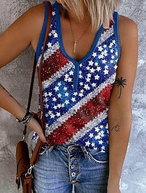 Uavhengighetsdagen Patriotisk Kvinne T-skjorte Grafisk Flagg Vintage Stilig Klassisk Kortermet V-hals Vanlige Topper Daglig Helg Trykk Svart Hvit Rød Blå Sommer