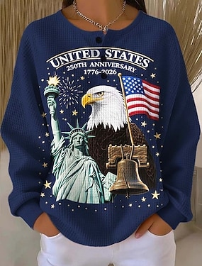 Amerikansk uavhengighetsdag Dame T skjorte T-skjorte Trykt mønster Grafisk Amerikansk flagg Stilfull Klassisk Fritid Langermet V-hals Vanlige topper Daglig Ut på byen Helg Blå Navyblå Sommer Vår Høst