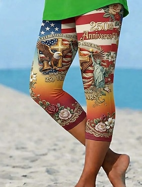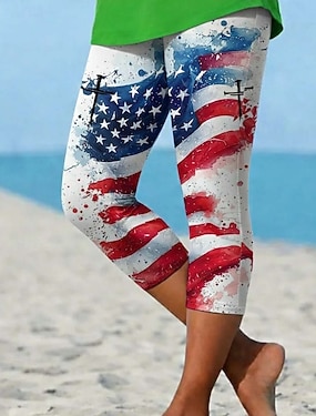 Uavhengighetsdagen Patriotisk Kvinne Leggings Ferie Vintage Motemote Legglang Høy Liv Bukser Grafisk Flagg Trykking Pustende Myk Stretchy Formell Ferie Kontor